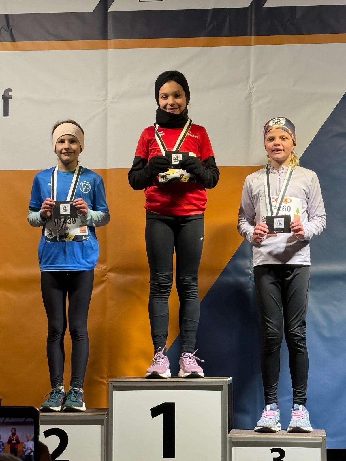 Bei den u12 wurde Tiziana Kurth 24. Sie lief die 1000m-Distanz in 3:37,9. Für die beste Platzierung war diesmal die jüngste LVL-Runnerin besorgt: Jana Kramer. Sie lief bei den u10 aufs Podest. Jana lief die 1000m in 3:30,5 und wurde tolle Dritte. Der Zieleinlauf war an Dramatik nicht zu überbieten. Das Spitzen-Trio mit Jana sprintete gemeinsam Richtung Ziel - den Sieg vor Augen. Zwei von ihnen - darunter Jana - bogen dann in der Aufregung fast falsch ab, korrigierten und erwischten den Zielbogen doch noch im Finish. Das Podest-Trio lag innerhalb von nur 5 Zehntel. Gratulation an Jana!
