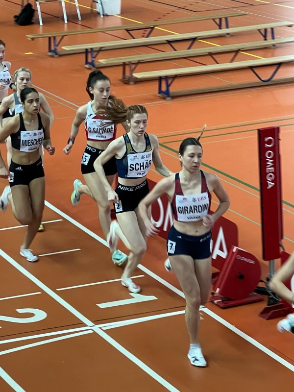 Besser lief es für Alicia Schär im Final 1500m mit 12 Frauen. Nach Meldeliste konnte sie mit Rang 10 oder 9 rechnen und mit soviel Läuferinnen in einem Rennen war mit Rempeleien zu rechnen. Alicia reihte sich aber geschickt im Mittelfeld ein, das Tempo war auf der ersten Runde hoch und fiel dann zusammen: 73’’ nach 400m waren perfekt, aber 2:29, bzw. 3:07 bei 800 und 1000m waren eher langsam. Das Feld somit ziemlich kompakt beisammen. Nach 1100m ging die Post ab und auch Alicia konnte noch grosse Reserven freimachen. Die letzten 400m lief sie in 67’’, überholte Melissa Girardin, Anna Peter und Aarti Miescher und kam in 4:33,87 als starke 5. ins Ziel. Sie toppte damit sogar ihre Outdoor-pB um 3’’ und liegt nun auch über 1500m auf Platz 2 der ewigen LVL-Hallenbestenliste hinter der legendären Annemarie Zingg-Lüthi und vor Nicole Egger.